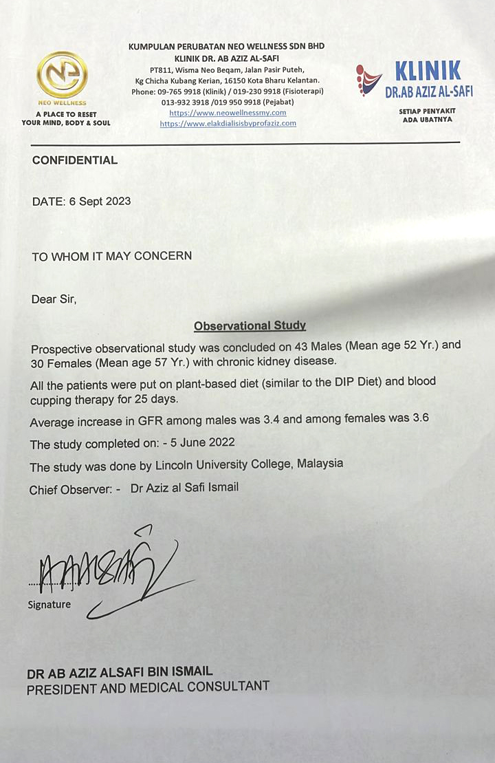 Lincoln University, Malaysia Prospective Observational Study on DIP Diet